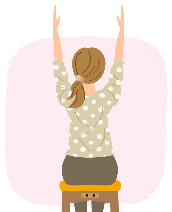 長時間座っているときは、10〜20分ごとに座ったままでもできるエクササイズを取り入れて、体を動かすのがおすすめです。基本的な動きなので気づいたときに毎日行いましょう。